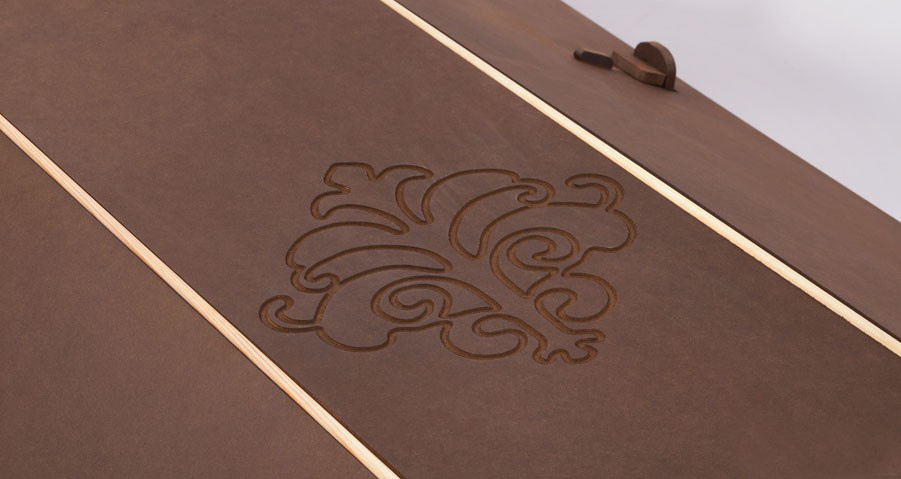 Nudažytas tamsiai ruda spalva.